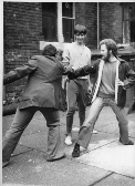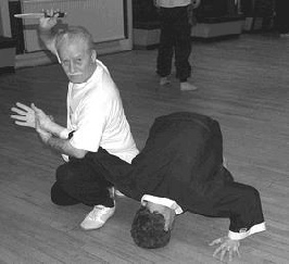 < Left: Shih-Kung Symonds demonstrating a Taoist Kung-Fu Knife Defence technique with Shih-fu Lawton (c.1998?)