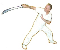 Right: Myke practising with his unique Dao, made for him personally by a local Hap Kid Instructor and Engineer.It weighs in at roughly 8.2 lbs.
